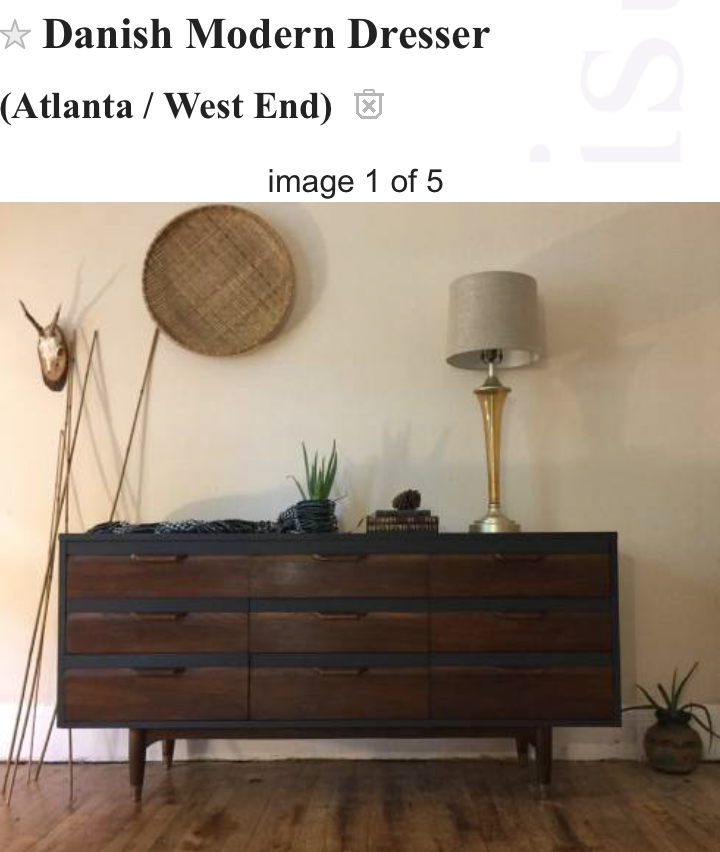 Jas and i have been in desperate need of a dresser with more storage. our sock drawer was a trooper, holding more than it's fair share of socks, undies and knick-knacks. 4 drawers just wasn't cutting it for both of our folded things so we started our hunt. we found one we love from West Elm, but knew we couldn't afford it, so it became our frame of reference. after feeling defeated, we turned to Craigslist. we are so glad we did. there were BEAUTIFUL pieces both expensive and affordable. we refined our search terms, determined the max distance we were willing to drive and found it. making contact with the seller was the real struggle.