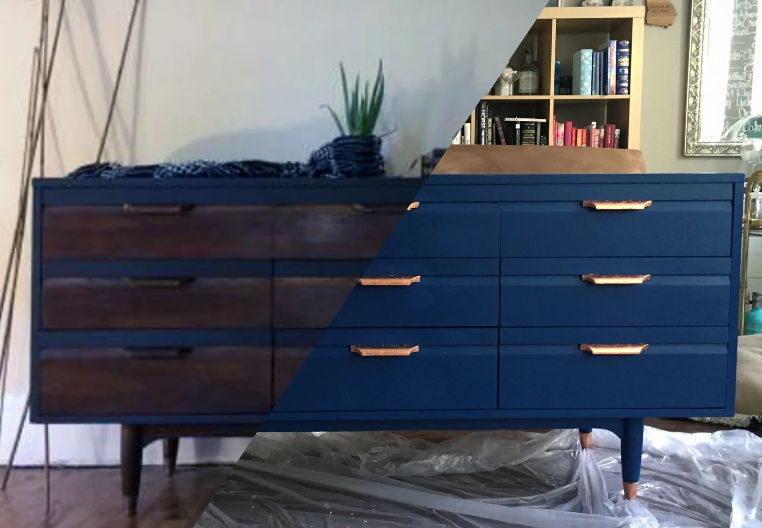 we are completely in love with our latest mid-century modern addition! the blue is unexpected, but that's why it's so completely us. so what do you think? would you rock a bright, bold blue dresser? tell me in the comments below.